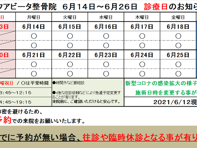 2021年8月15日~8月28日の施術予定日のお知らせ